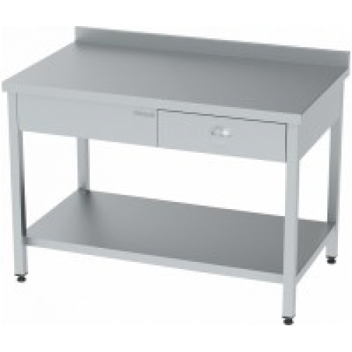 СТОЛ ПРОИЗВОДСТВЕННЫЙ С ПОЛКОЙ И ЯЩИКОМ /1400*700*850ММ/ НЕРЖ.СТАЛЬ